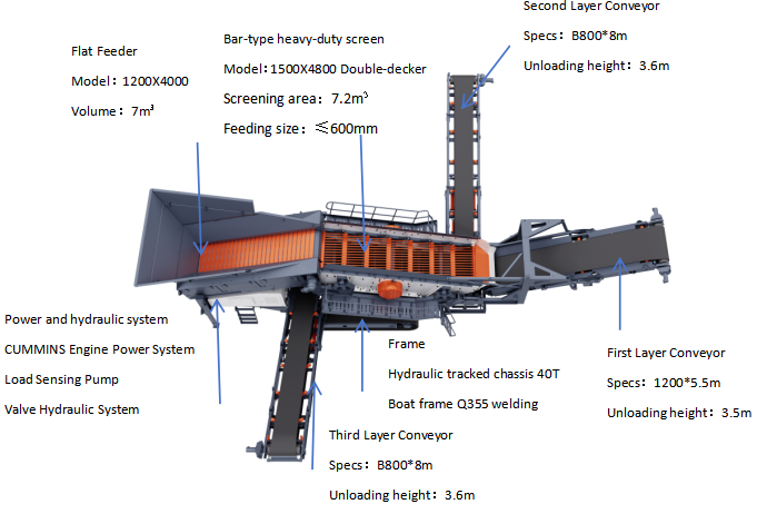 Mobile Track-mounted Vibrating Screen is equipped with a large-capacity hopper, delivering outstanding production capacity and precise separation for screening sand, gravel, aggregates, or recycled and demolition materials. It can operate independently or be integrated into a complete crushing and screening plant, offering flexible combinations and greatly expanding application fields. The tracked screen unit utilizes high efficiency inclined vibrating screen boxes.Robust tracks ensure excellent on-site positioning and mobility together with operational stability.Variable speed forward and side product conveyors are hydraulically operated and easily stowed for transport.