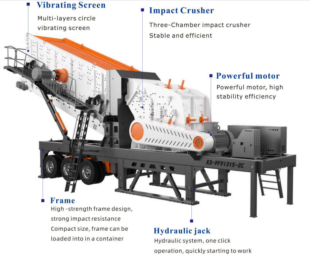 The WOCATO K3 Wheeled Impact Crusher is a portable crushing plant designed for medium crushing and screening, primarily used for processing soft rocks. It features stable performance, easy mobility, quick installation, convenient maintenance, and integrated electrical control for a portable mobile plant. At the same time, by integrating crushing and screening into a single mobile plant, it provides users with more diverse modular solutions.